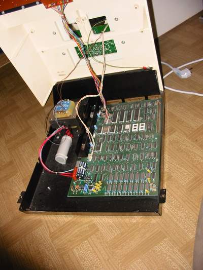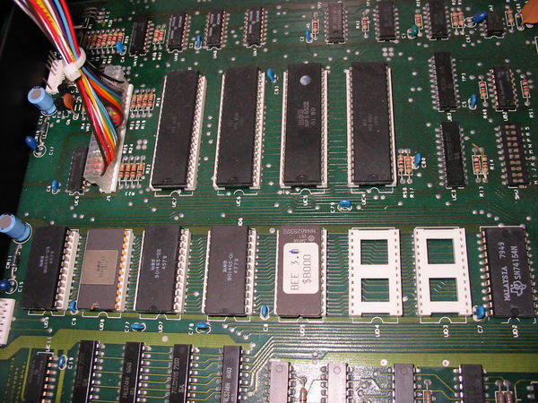 Närbild på ROM-kretsarna. Observera BASIC-utökningen i en av