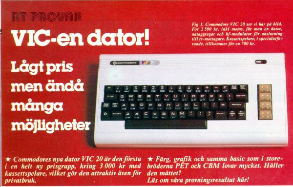 VIC - den första hemdatorn - står det i annonserna, och visst finns det fog för det. Det har sedan åtskilliga år tillbaka funnits datorer som kan vara lämpliga för lek och hobby men inga som så direkt har riktat sig till den här målgruppen, låt oss kalla den lekmännens! Vi skall dock inte glömma Sinclair ZX 81 som dock är betydligt enklare, men också avsevärt billigare.