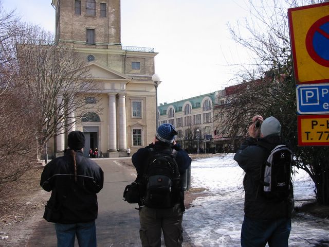 Göteborg 2006 -- A church. Three people photographing said church.