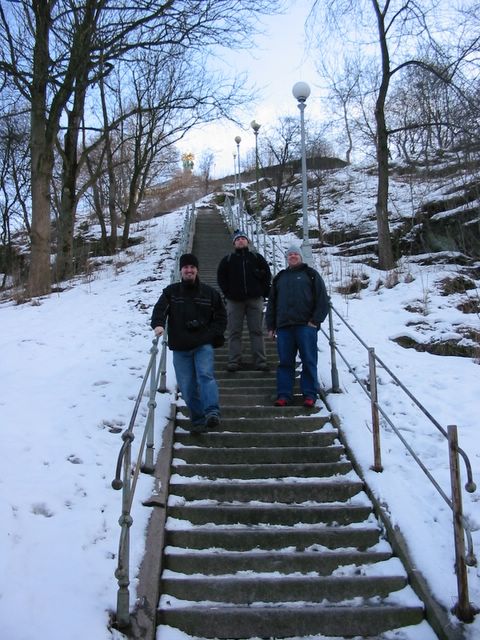 Göteborg 2006 -- Tarquin, Moose and Ola on the long path up to the Crown Fortlet (Skansen Kronan).