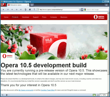 Huib today writes “As a Christmas present, we’re happy to share all the goodies of Opera 10.5 with Presto 2.5 with you in an early pre-alpha release” in the desktop team’s blog. The build is available in Windows and Mac OS flavours from labs.opera.com. Unfortunately no Linux or Unix version this time.