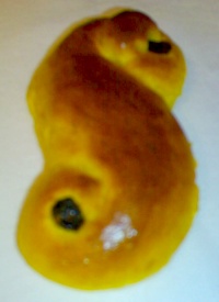 Since I neither managed to secure tickets for either of today’s Lucia events at the Swedish Church here in Oslo, nor had time to make my own Lucia bread this year (both of which can be attributed to bad planning on my part), it was very nice to see that my colleague Espen did not falter this year either, and I managed to grab a saffron bun right after arriving at the office this morning.