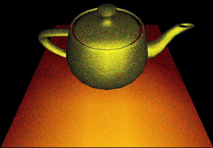 3D-texturmappad tekanna (textur: random), med en färgad lampa och färgade objekt